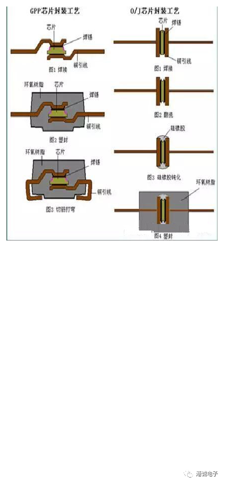 GPP结构的产品,芯片的P-N结是在钝化玻璃的保护之下,玻璃是将玻璃粉采用800度左右的烧结熔化,冷却后形成玻璃层。这玻璃层和芯片熔为一体,无法用机械的方法分开。